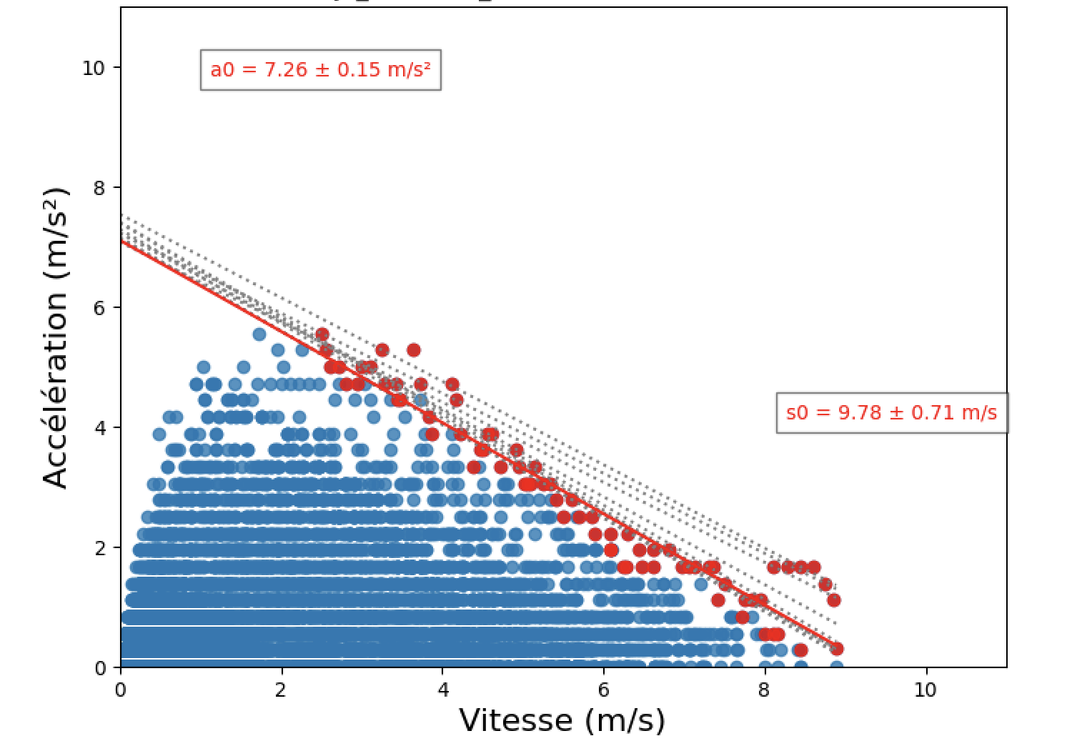 Figure 1 – Exemple de détermination du profil Accélération (a0) vitesse (s0) à partir de données de régressions multiples de données GPS.